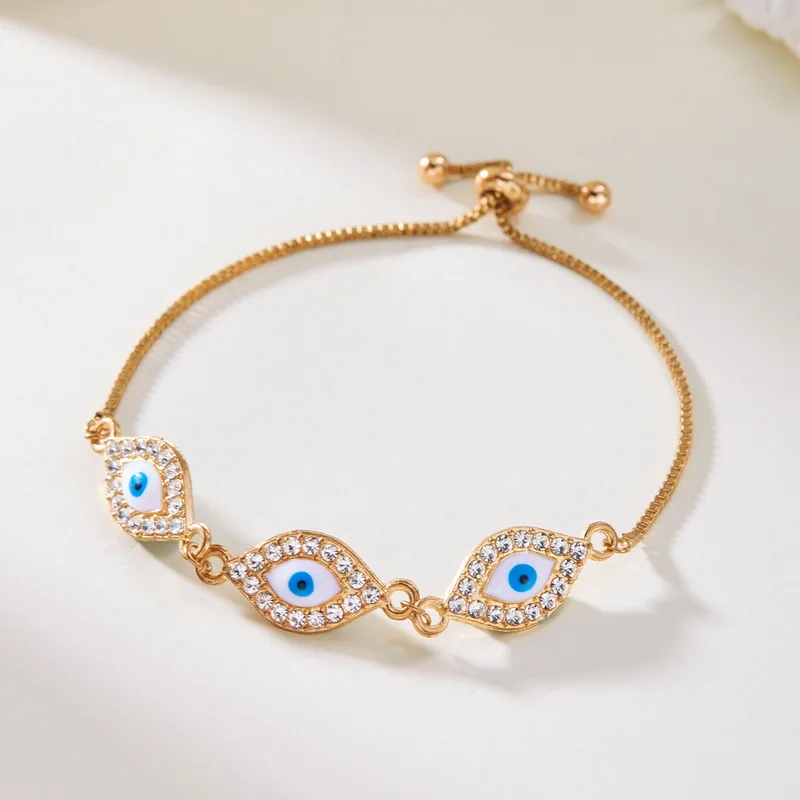 Classic Turkish Evil Eyes Bracelet for Women Lucky Rhinestone Blue Eye Push Pull Adjustable Bracelet Girls Party Jewelry Gift