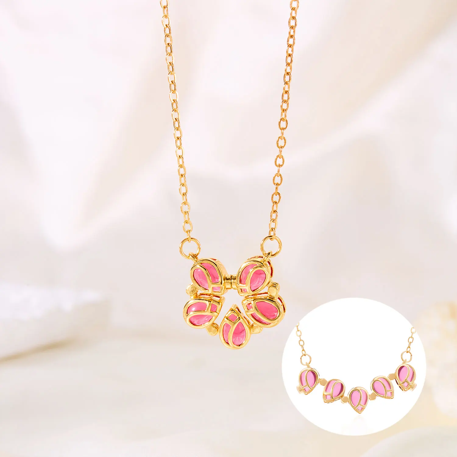 Magnetic Gold Plated Sweet Tulip Flower Pendant Necklace For Women Princess Birthday Gifts Jewelry