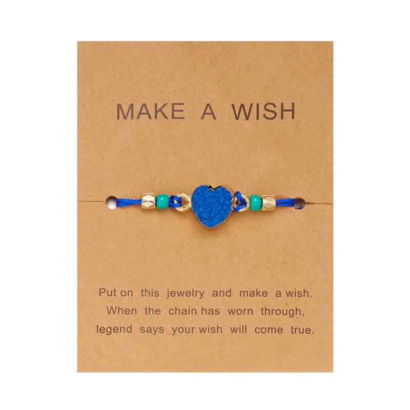 Minimalist Heart Braided Rope Bracelet for Women Fashion Handmade Adjustable Bracelet Make a Wish Card Friendship Jewelry Gift