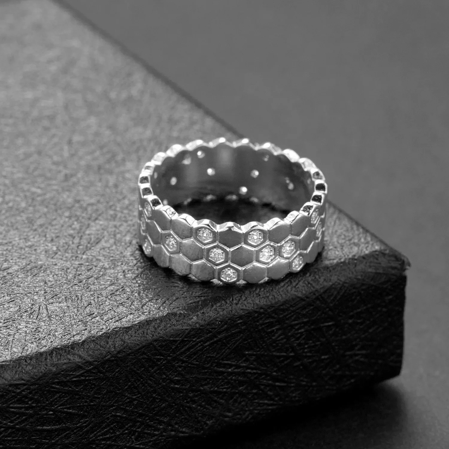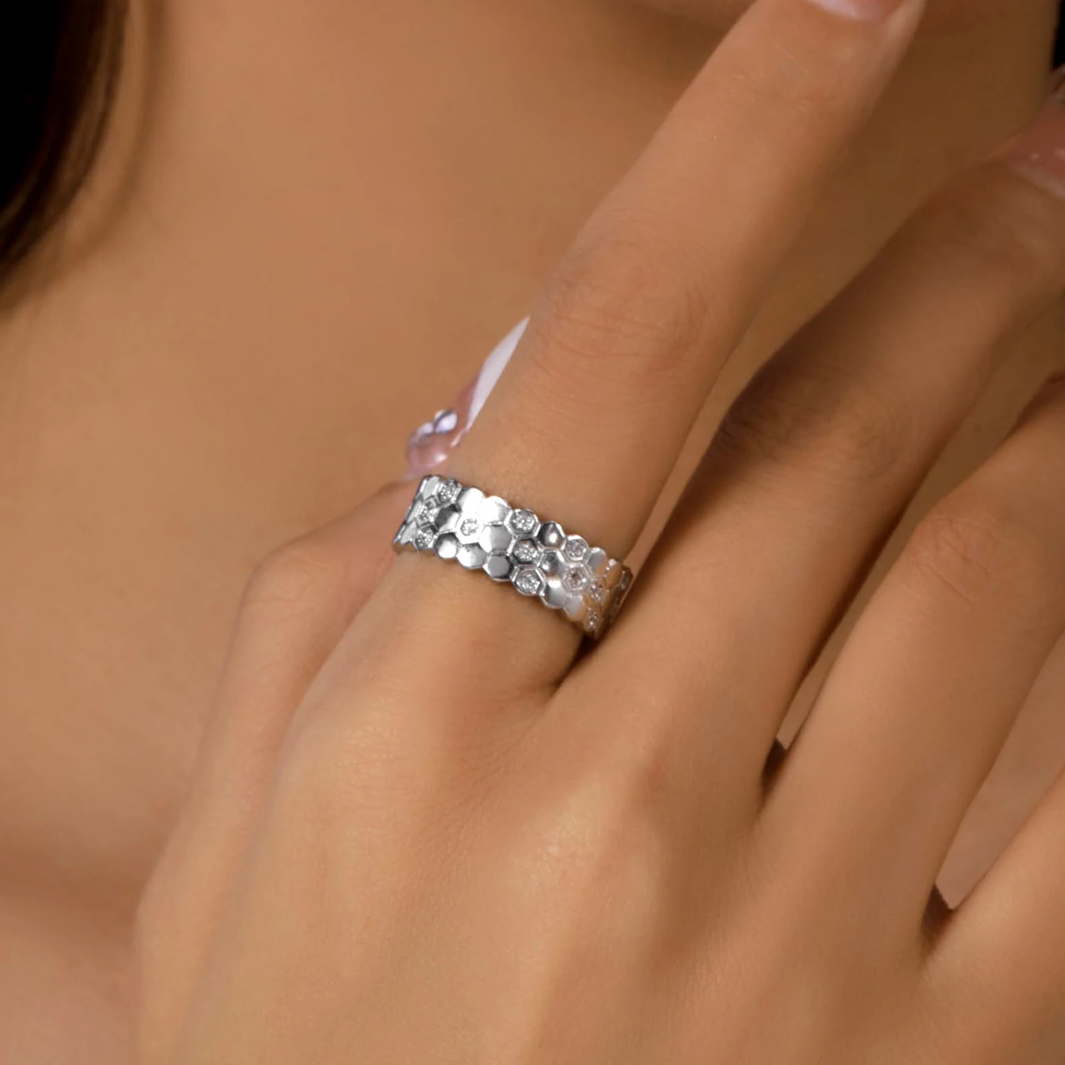 Minimalist Luxury Inlaid Zircon Honeycomb Rings For Women Fashion Geometric Hexagon Stacking Finger Rings Wedding Party Jewelry