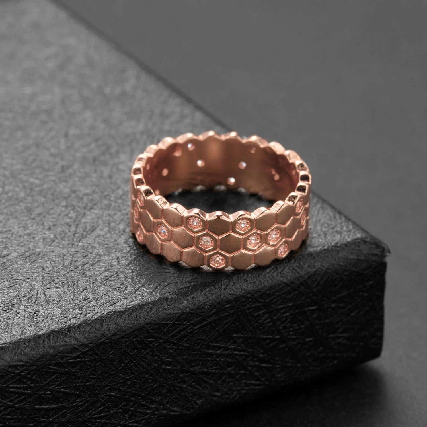 2pcs Rose Gold Color Beehive Finger Rings for Women Fashion Zircon Honeycomb Engagement Ring Lovers Wedding Jewelry Accessories