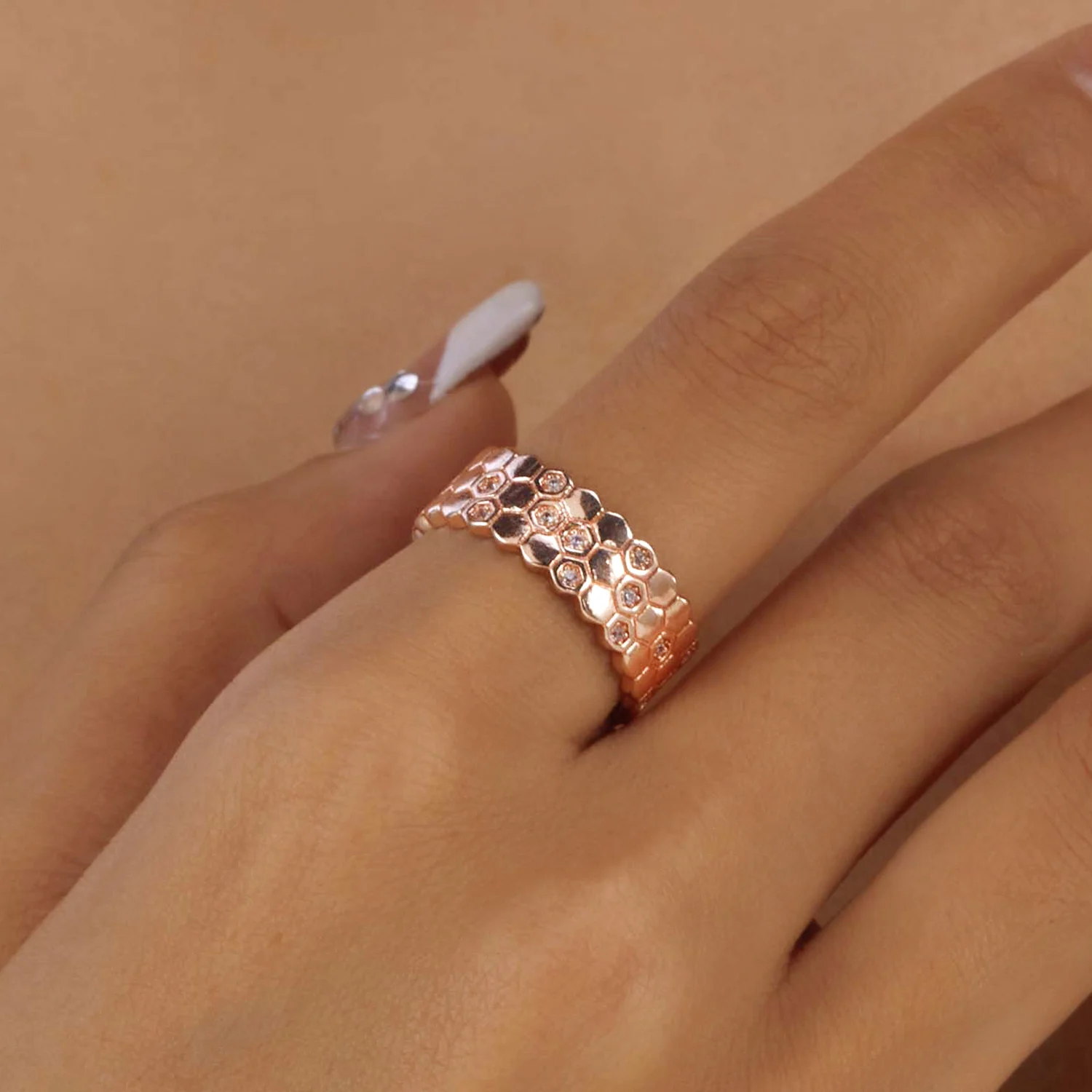 Minimalist Luxury Inlaid Zircon Honeycomb Rings For Women Fashion Geometric Hexagon Stacking Finger Rings Wedding Party Jewelry