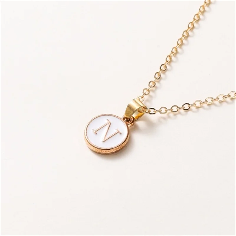 Fashion A-Z 26 Letters Necklace For Women Exquisite Initials Name Round Enamel Pendant Clavicle Chain Choker Necklaces Jewelry
