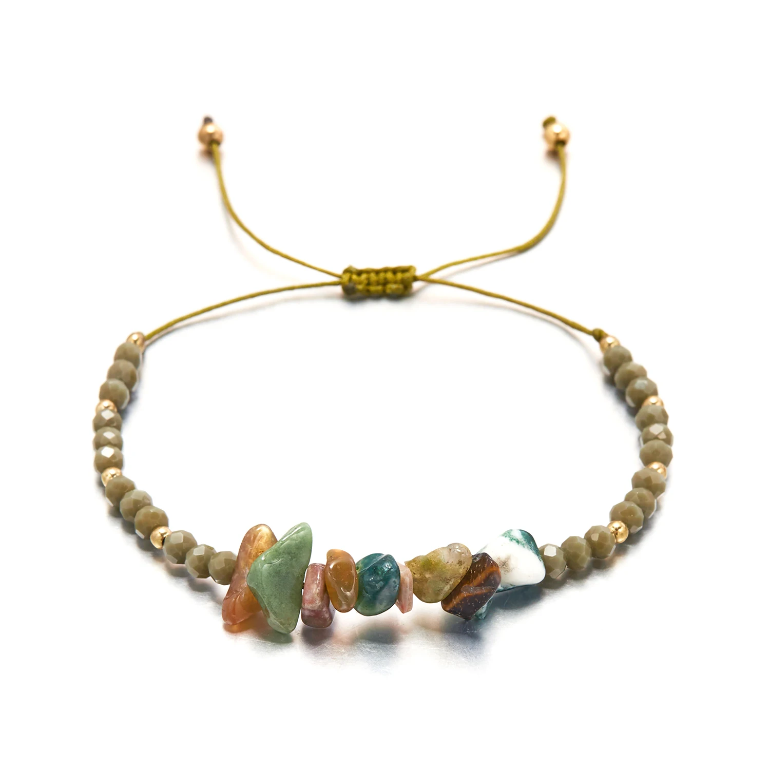 Boho Natural Stone Chips Beaded Rope Bracelet For Women Men Charm Handmade Woven Colorful Adjustable Jewelry Friendship Gift