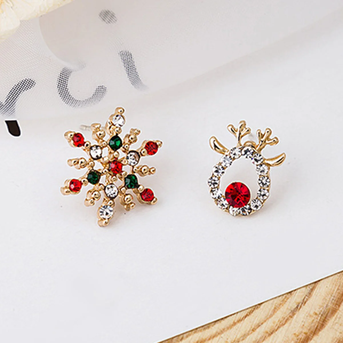Cute Christmas Elk Deer Snowflake Asymmetric Small Earrings For Women Merry Christmas Jewelry Santa Claus Earring New Year Gifts