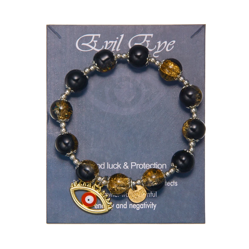 Blue Crystal Crackle Beads Bracelets Trendy Evil Eye Letter Love Pendant Bracelet For Women Men Jewelry Bead Charm Gift