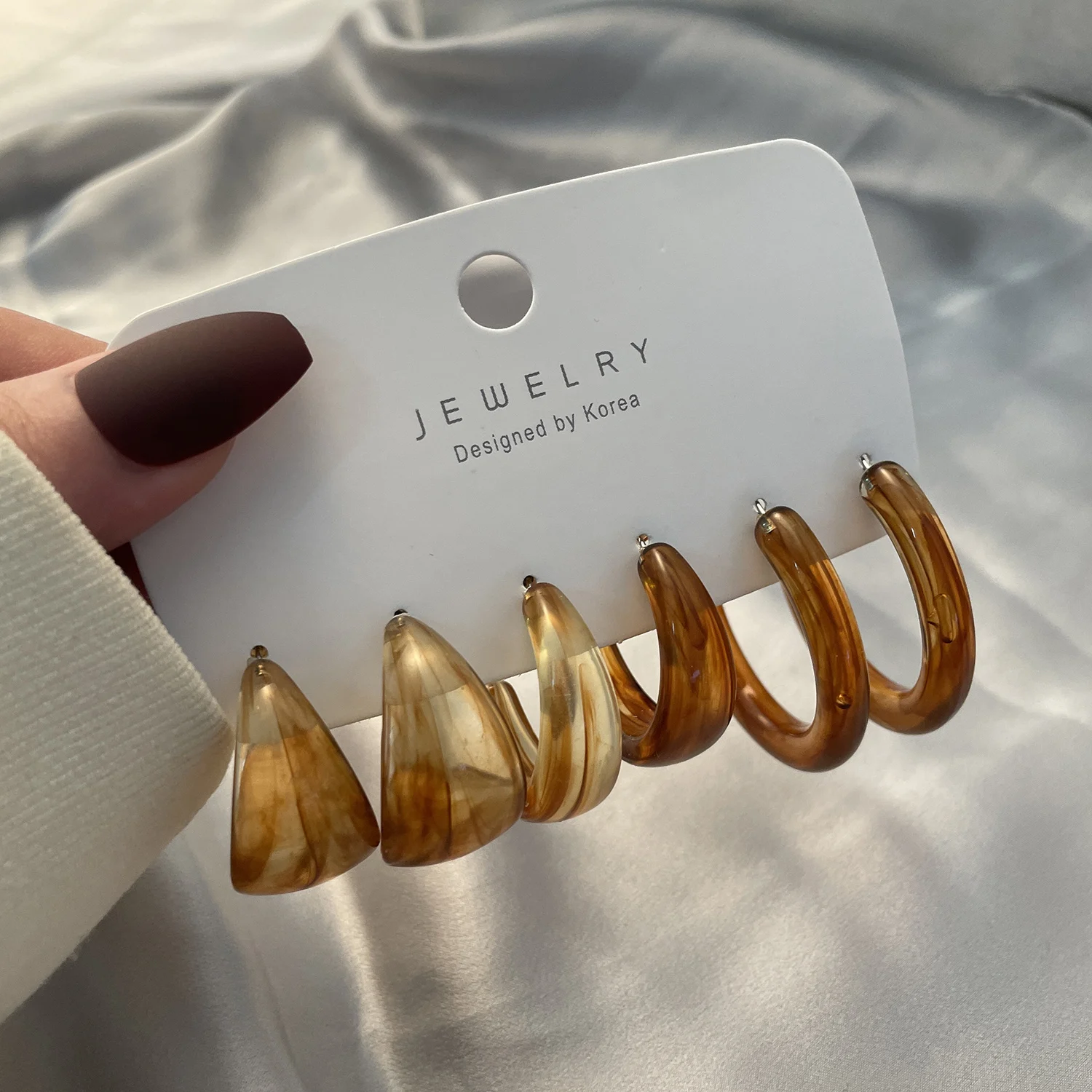 Acrylic Gold Color Metal Big Hoop Earrings Set for Women Girls C-Shaped Resin Hoop Earrings Party Travel Fashion Jewelry Gifts