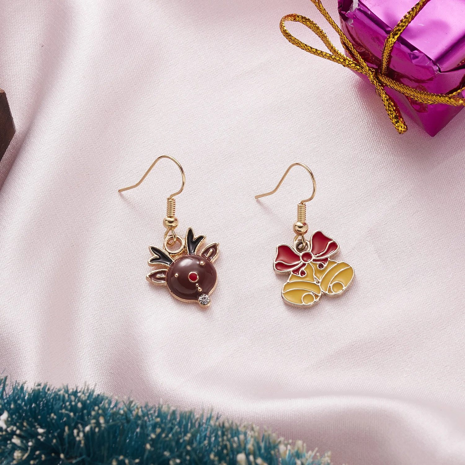New In Red Bowknot Bell Dangle Earrings For Women Elegant Christmas Bell Elk Deer Drop Earrings Holiday Jewelry Fashion Gifts