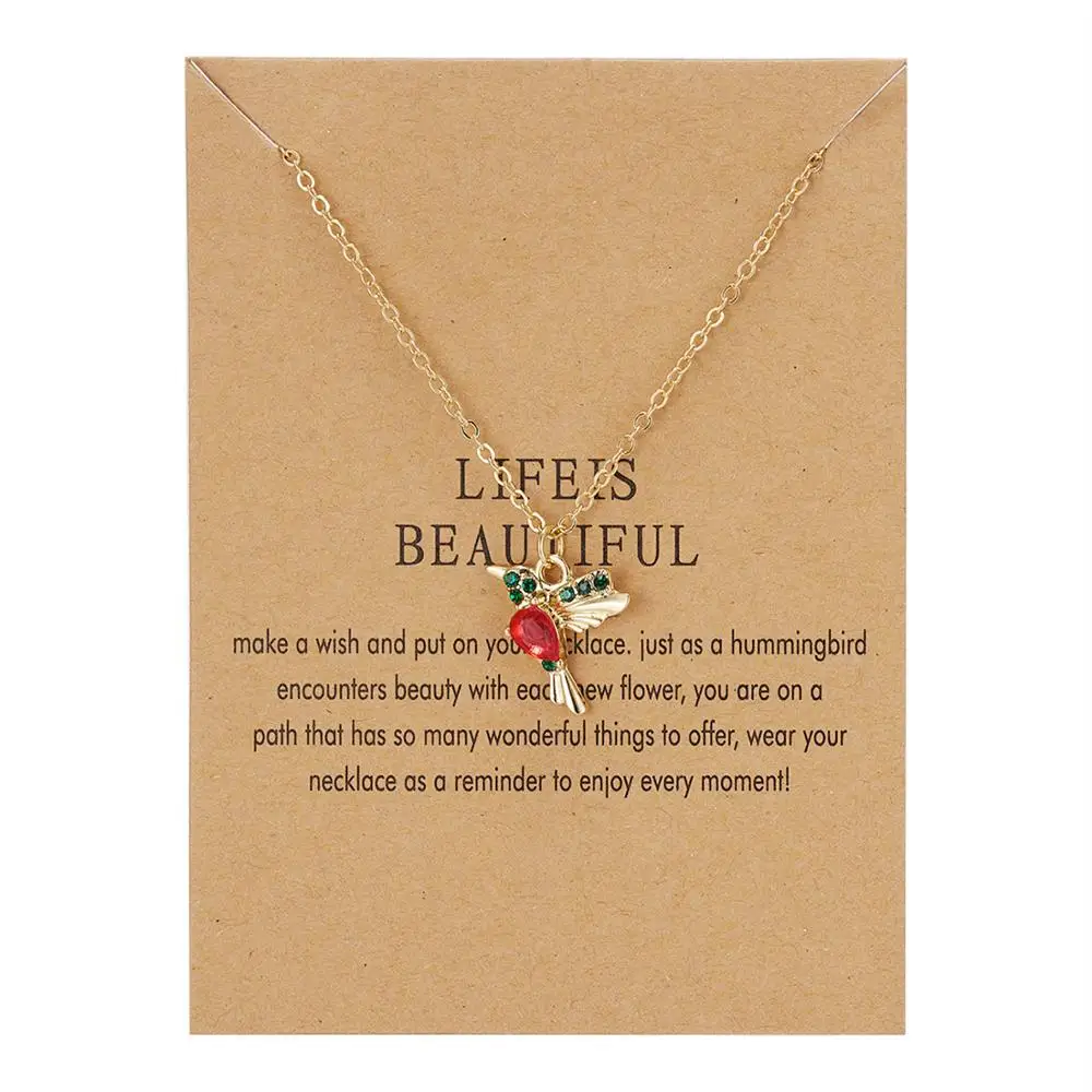 New Trendy Alloy Cute Elegant Wish Luck Hummingbird Butterfly Pendant Necklace for Women Fashion Jewelry Wholesale Dropshipping