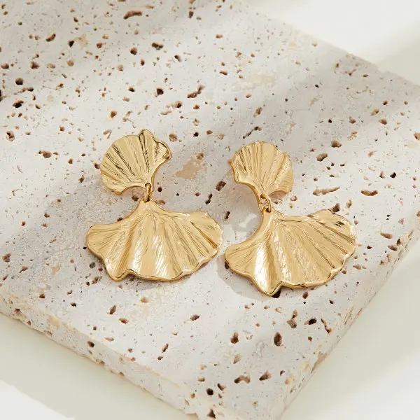 Bohemian Gold Color Ginkgo Biloba Leaf Shape Drop Earrings for Women Fashion Stainless Steel Flower Earrings Party Jewelry