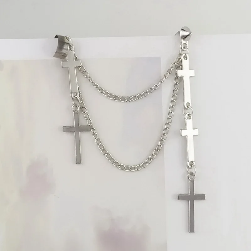 1Pc Cool Personality Girl Cross Chain Pendant Drop Earrings For Women Men Street Hip Hop Punk Piercing Earring Jewelry Gift