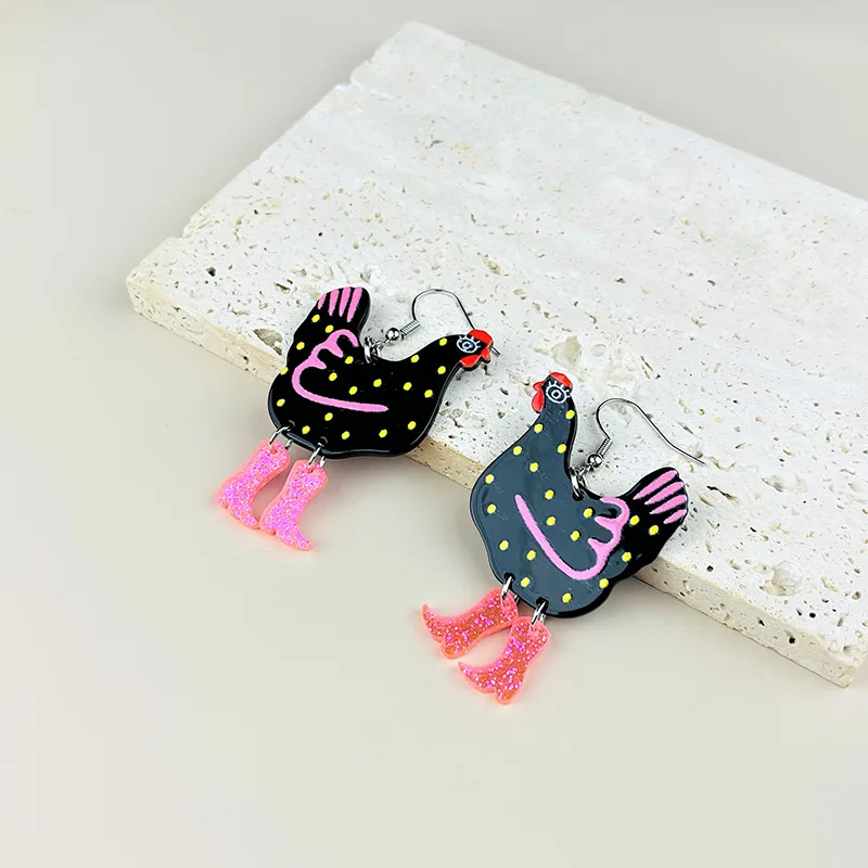 Novelty Cute Colorful Spot Chick Earrings Personality Acrylic High Heel Big Rooster Earrings For Women Party Jewelry