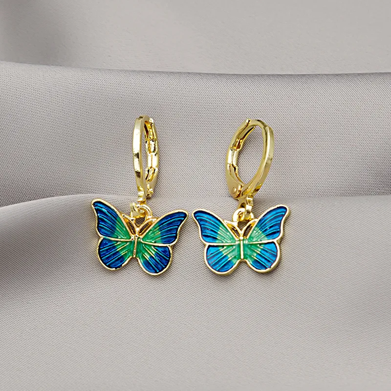 Retro Fashion Colorful Enamel Butterlfy Dangle Hoop Earrings New Charm Wedding Jewelry Metal Earrings For Women Party Gift
