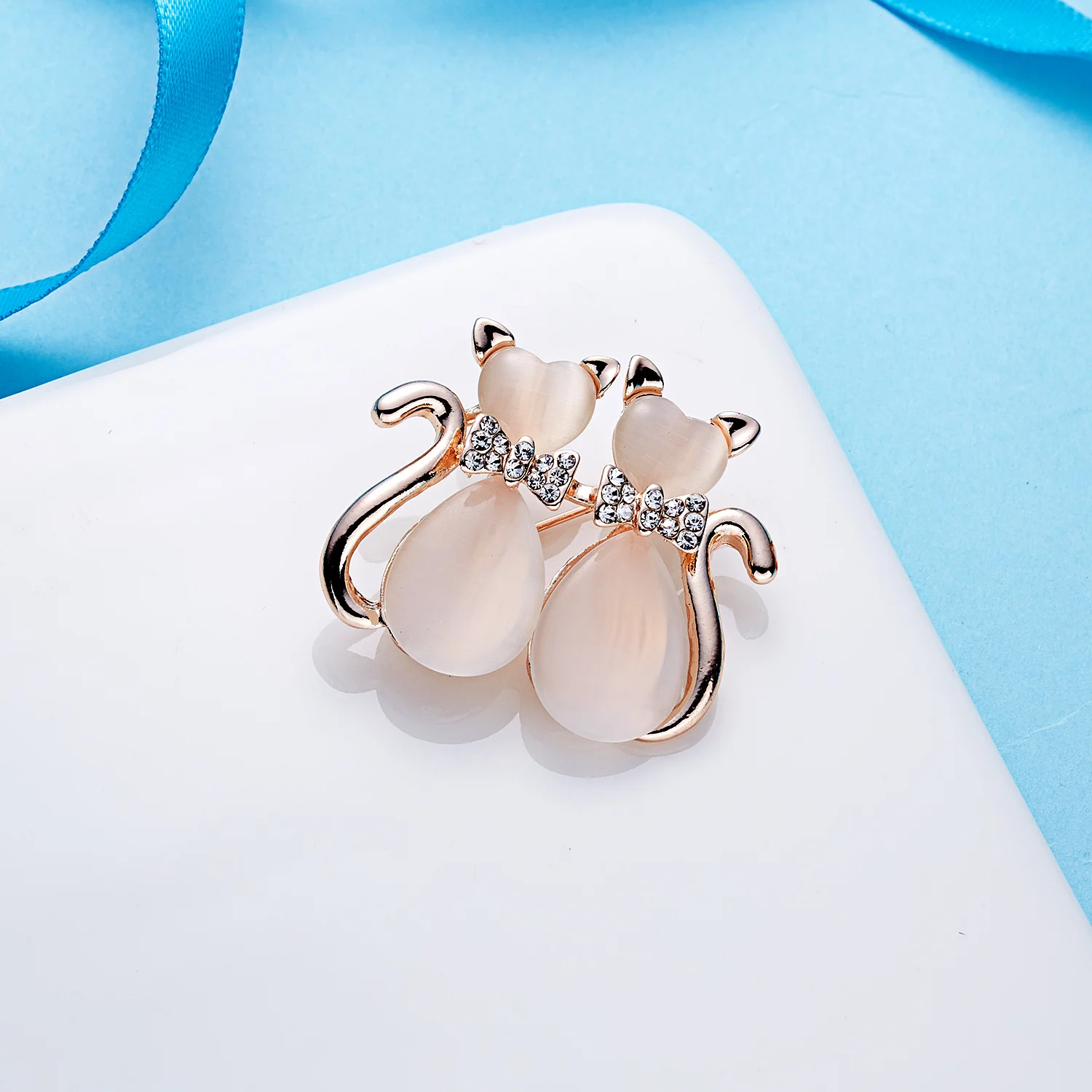 Cute Transparent Opal Cat Kitten Brooches for Women Fashion Crystal Rhinestone Moon Corsage Brooch Pin Clothes Accessories