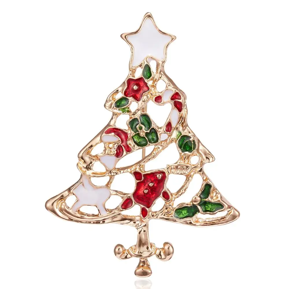 Christmas Series Enamel Brooch Tree Bells Snowman Santa Claus Angel Brooches Delicate Charms Crystal Pin Brooch