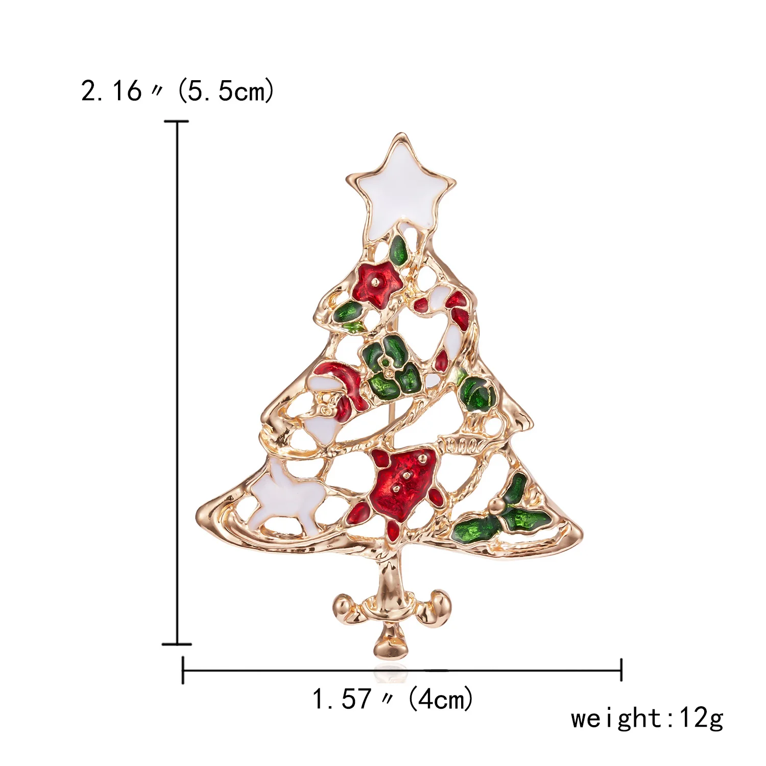 Rinhoo Green Enamel Christmas Tree Brooches For Women Vintage Colorful Rhinestone Xmas Tree Pins Fashion New Year Party Jewelry