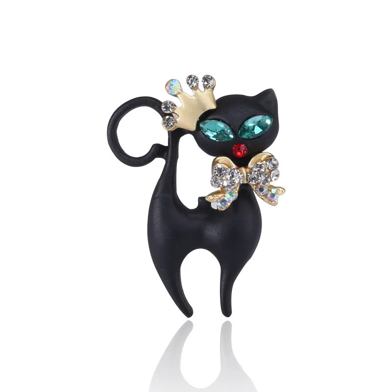Lovely Black Cat Crown Brooches Pins for Women Men Cute Animal Kitten Metal Jewelry Party Office Dress Suits Scarf Accessories