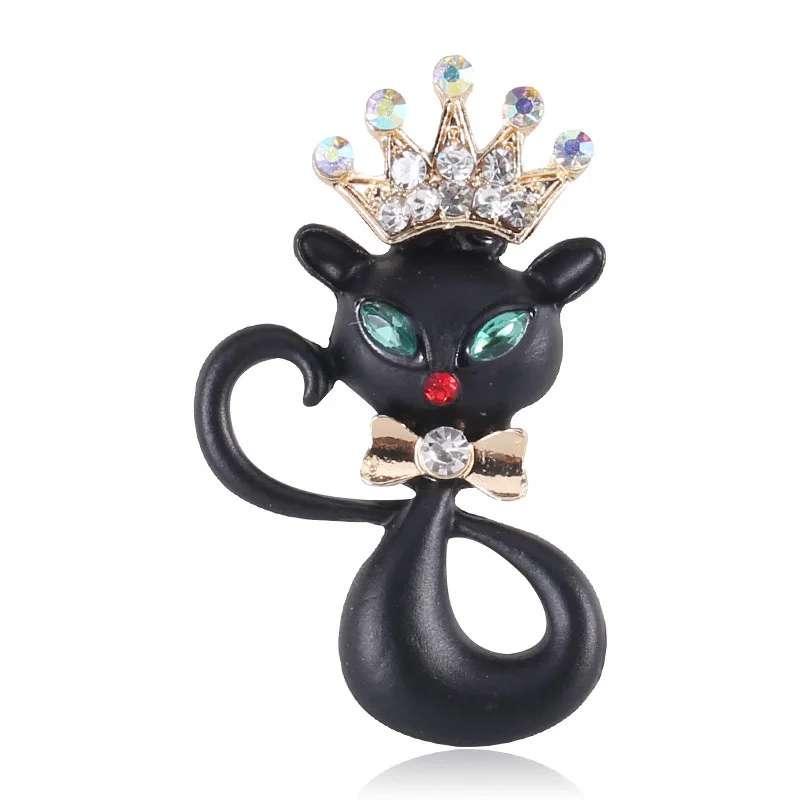 Lovely Black Cat Crown Brooches Pins for Women Men Cute Animal Kitten Metal Jewelry Party Office Dress Suits Scarf Accessories