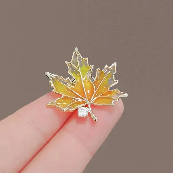 Rinhoo Full Rhinestone Maple Leaves Brooches For Women Vintage Yellow Green Crystal Leaf Lapel Pins Plant Buckle Badges Jewelry
