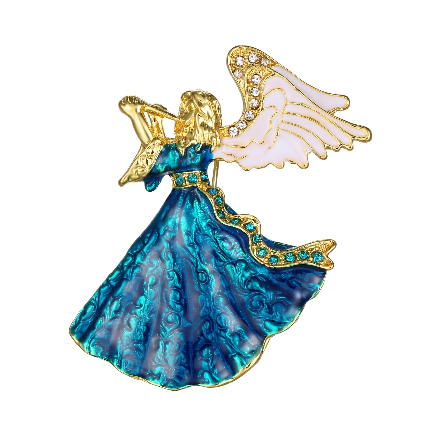 Rinhoo Music Angel Fairy Brooches For Women Vintage White Angel Wings Christmas Figure Enamel Pins New Year Gifts Xmas Jewelry