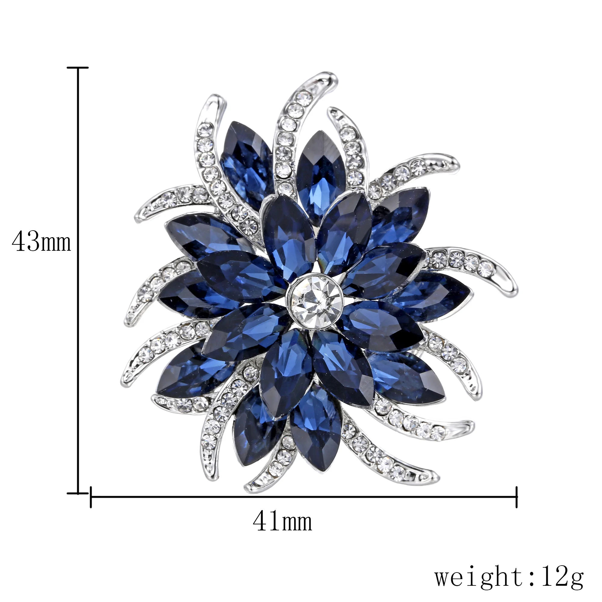 Crystal Flower Brooch Pins Women Deep Blue Flower Broches Plant Elegant Badge Jewelry Fashion Wedding Party Brooch Party Gifts