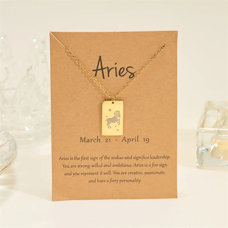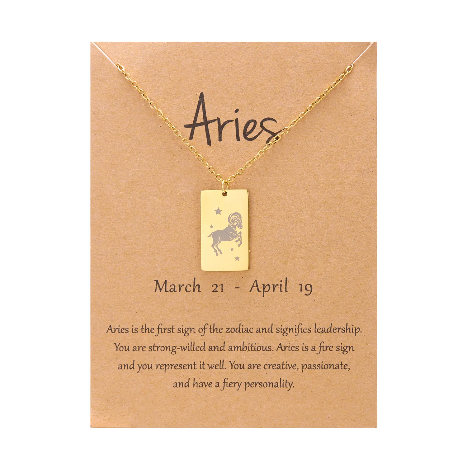 Gold Color 12 Zodiac Sign Constellation Necklaces for Women Men Stainless Steel Pendant Necklace Birthday Jewelry Wish Card Gift