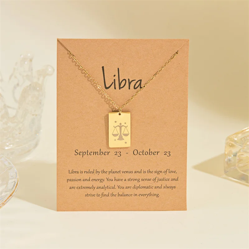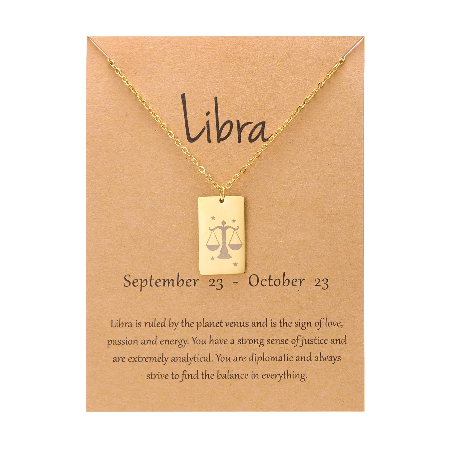 Gold Color 12 Zodiac Sign Constellation Necklaces for Women Men Stainless Steel Pendant Necklace Birthday Jewelry Wish Card Gift