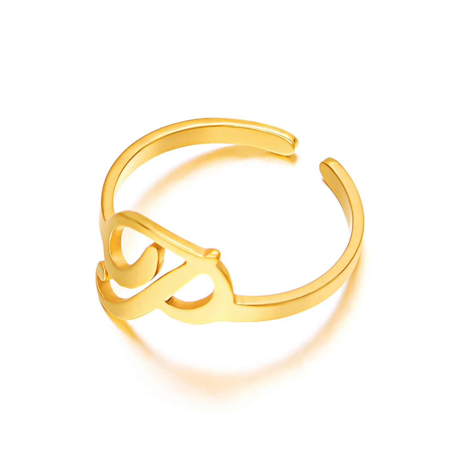 26 Initial Letters Rings For Women Men Stainless Steel Gold Color A-Z Alphabet English Name Open Finger Rings Birthday Jewelry