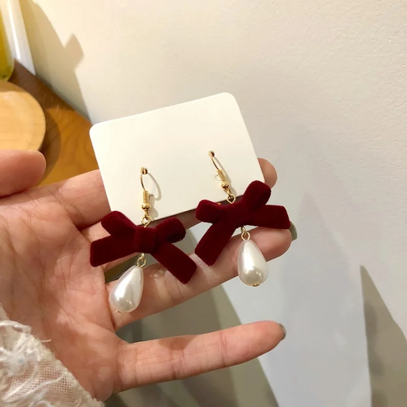 Sweet Girl Temperament Red Butterfly Knot Heart Drop Earrings Women Korean Jewelry New Year Accessory Christmas Party Gift 2021