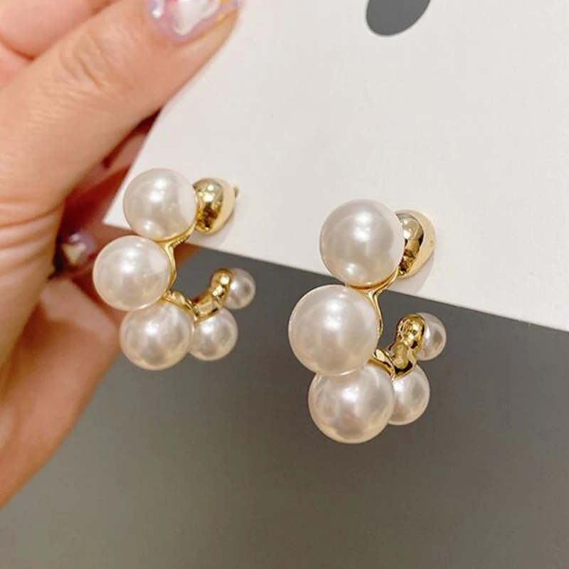 Korean Statement Gold Color Piercing Multiple Grapes Shape Pearl Zircon Drop Earrings for Women Fashion Jewelry brincos feminino