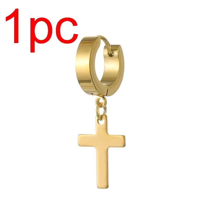 1 Piece Men Women Punk Gothic Cross Exaggerated Classic Metal Christian Chain Drop Dangle Earrings Street Hip Hop Jewelry Kpop