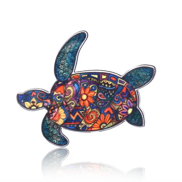 Rinhoo Acrylic Pattern Printing Sun And Moon Brooches For Women Vintage Turtle Elephant Bird Cat Horse Animal Lapel Pins Jewelry