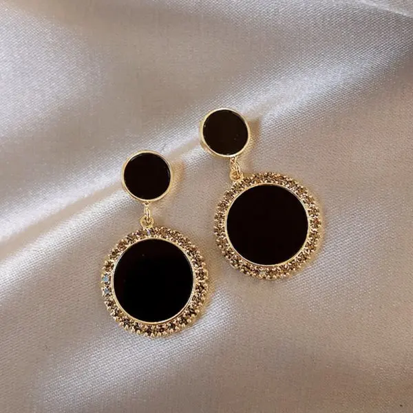 Korean New Black Round Rhinestone Drop Earrings for Women Shining Zircon Geometric Dangle Earring Female Temperament Jewelry