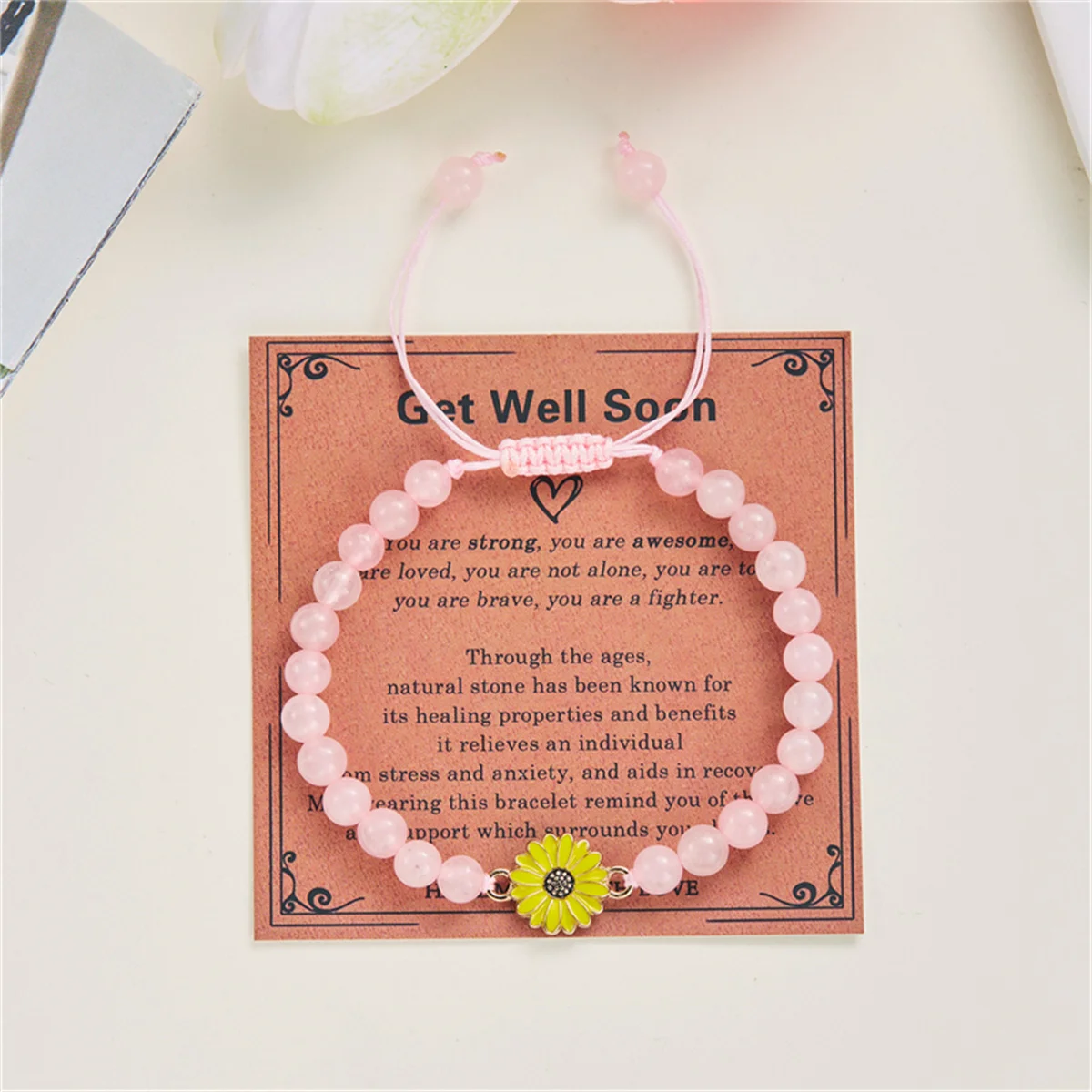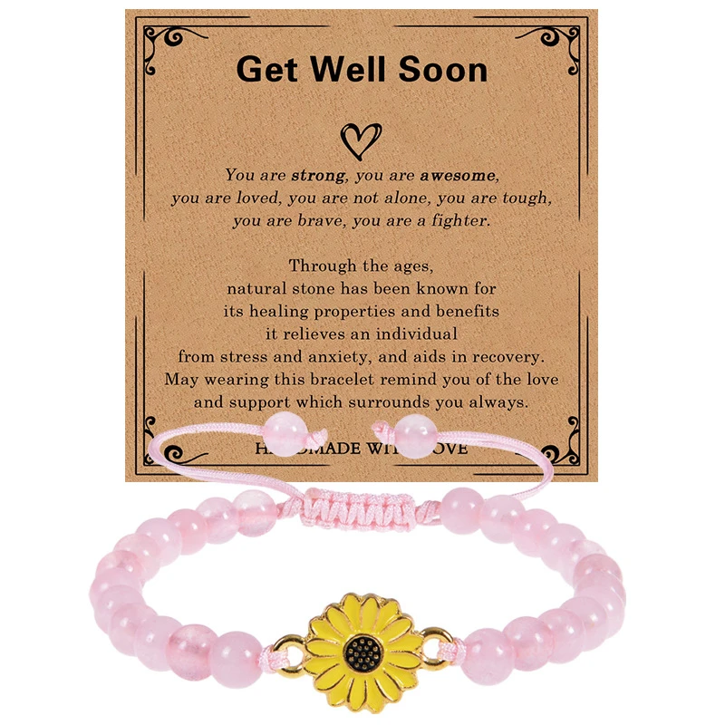 Natural Stone Beaded Sunflower Bracelets for Women Handmade Braided Daisy Flower Bracelet With Wish Card Get Well Soon Blessing