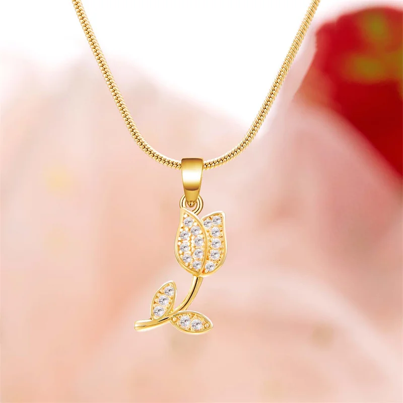 Elegant Romantic Tulip Flower Pendant Necklace for Women Fashion Gold Color Clavicle Chain Charm Luxury Jewelry Birthday Gift
