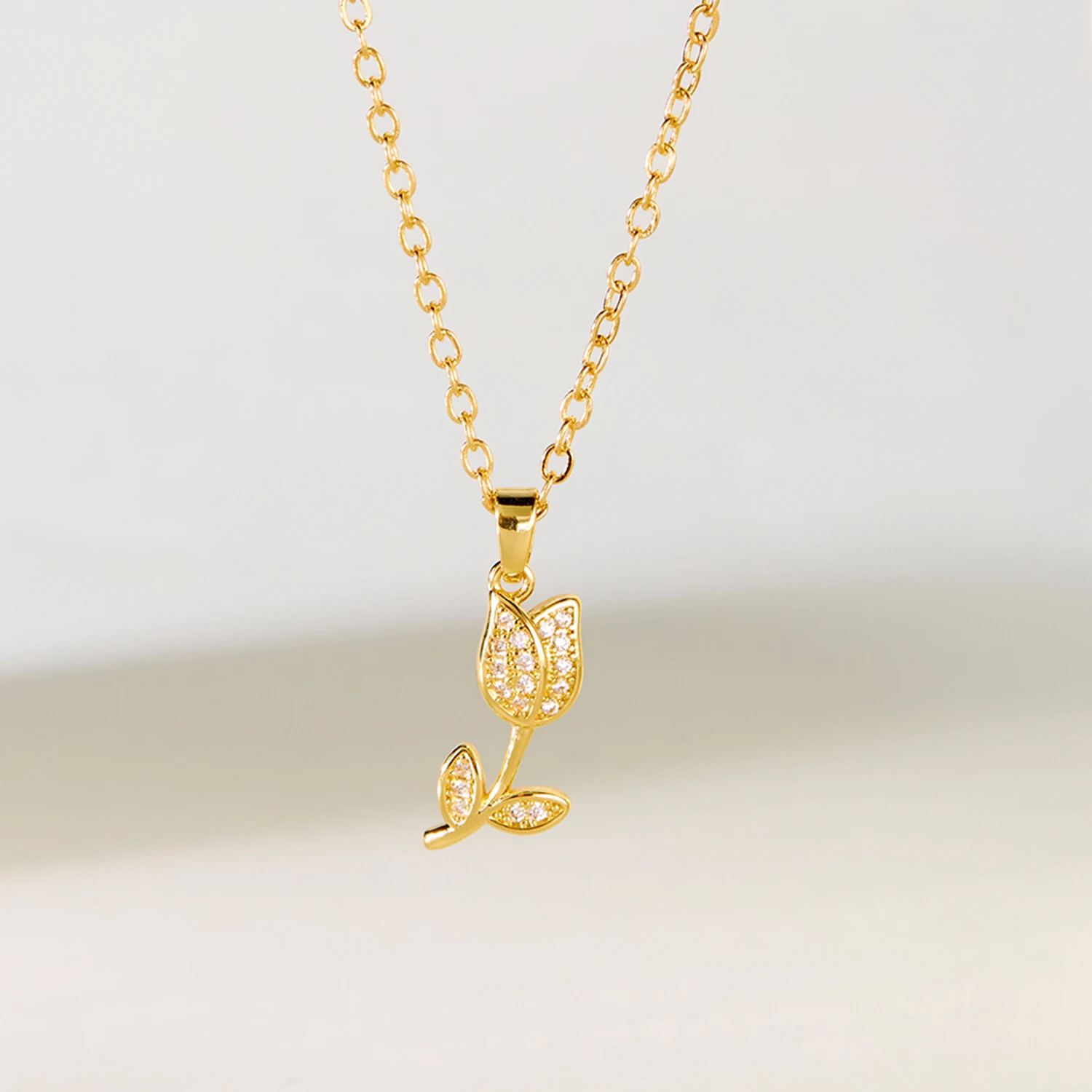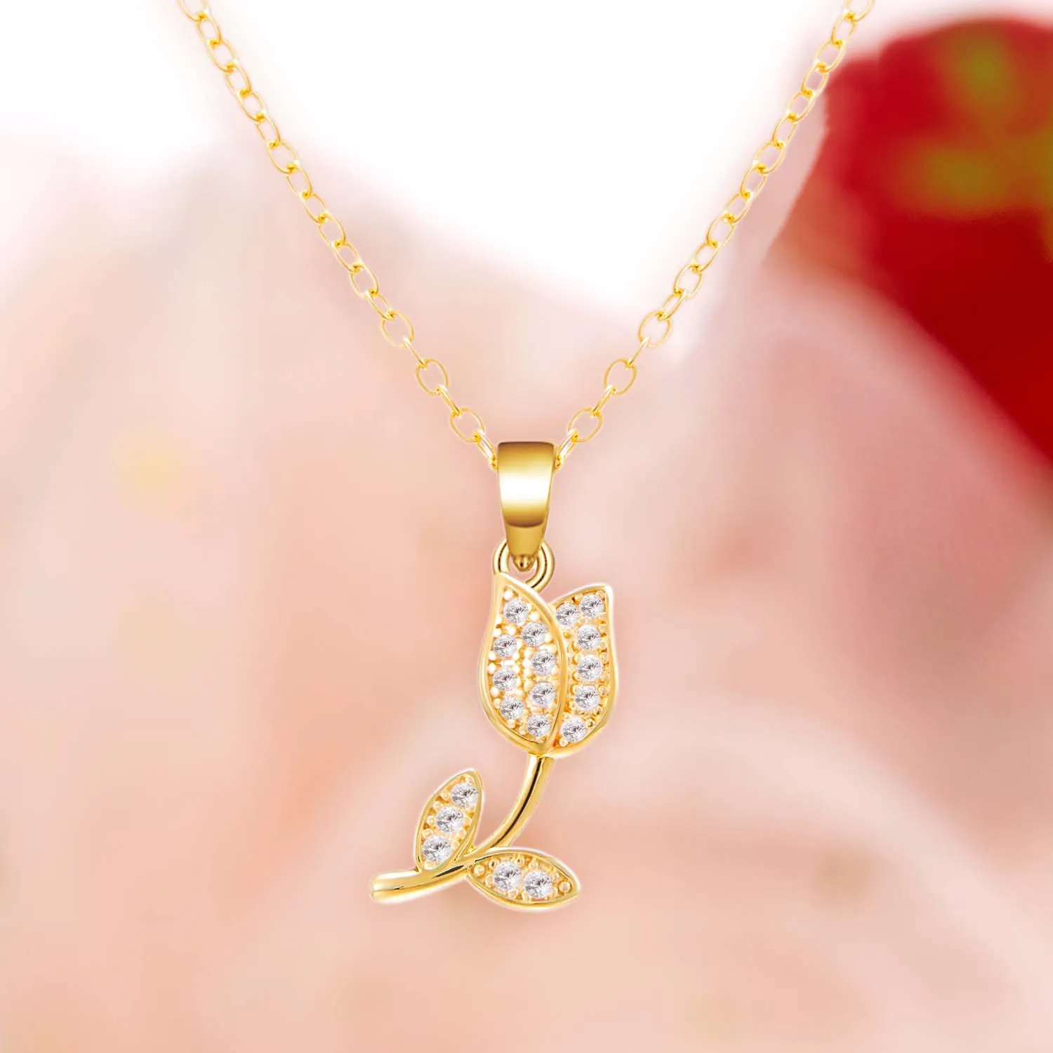 Elegant Romantic Tulip Flower Pendant Necklace for Women Fashion Gold Color Clavicle Chain Charm Luxury Jewelry Birthday Gift