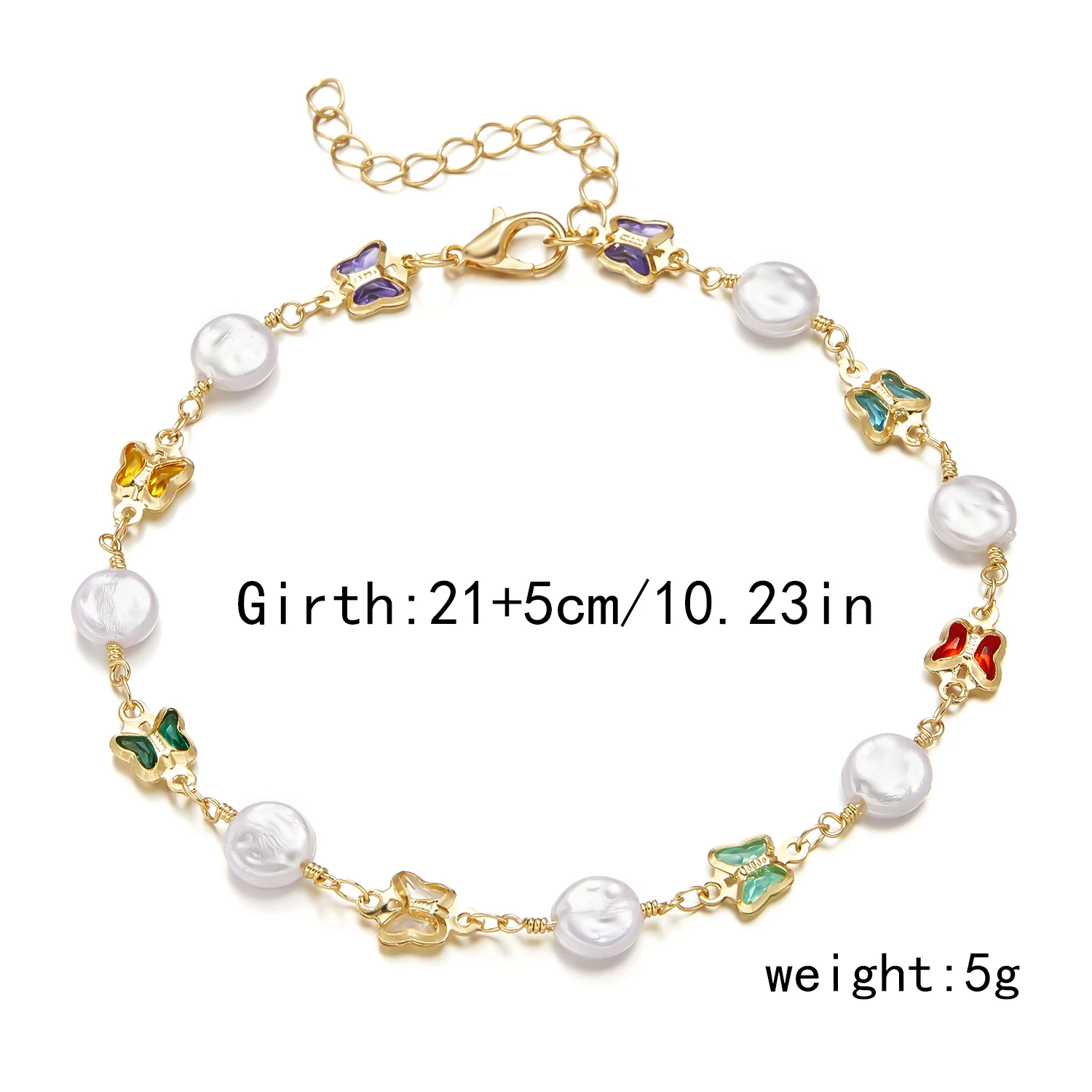 Exquisite Boho Candy Color Heart Shaped Crystal Bracelet for Women Fashion Charm Zircon Butterfly Pearl Metal Chain Bracelets
