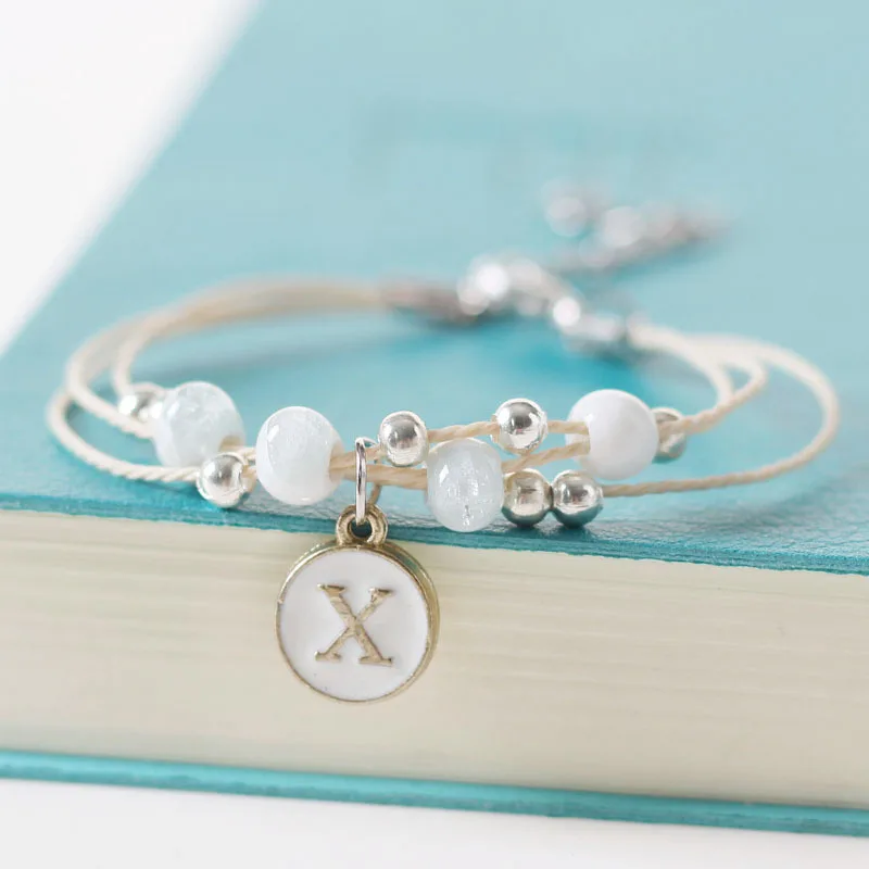 Cute Ceramic Beaded Bracelet A To Z Shell 26 Letter Pendant Bracelet For Women Girls Multi-layer Braided Rope Chain Bracelet