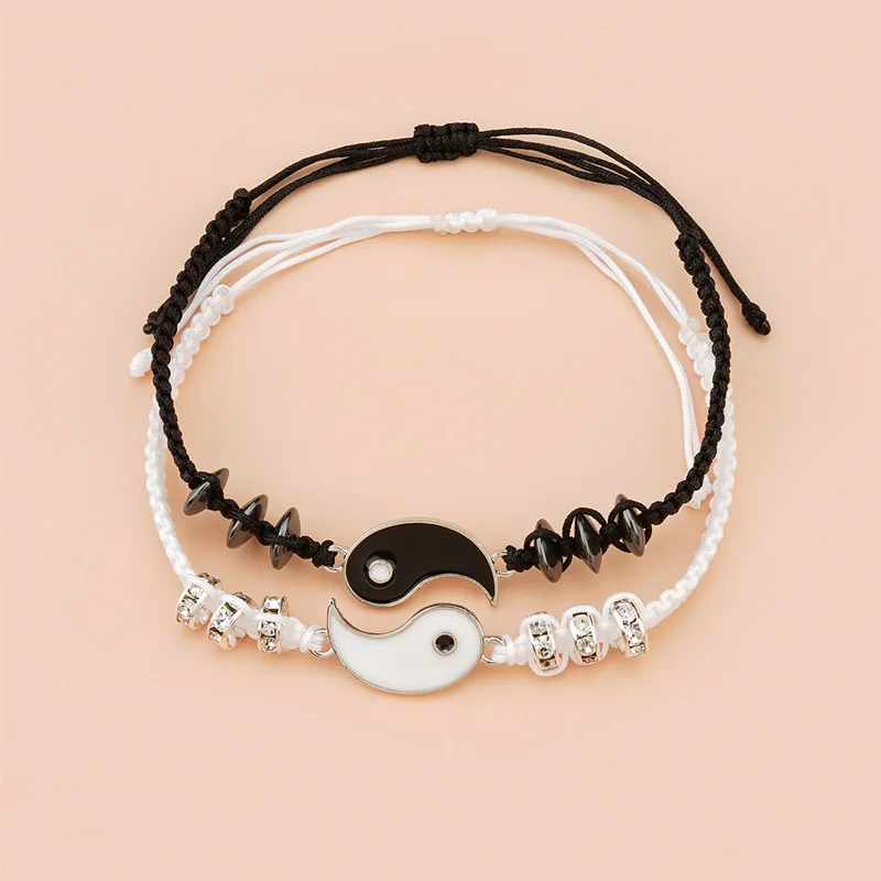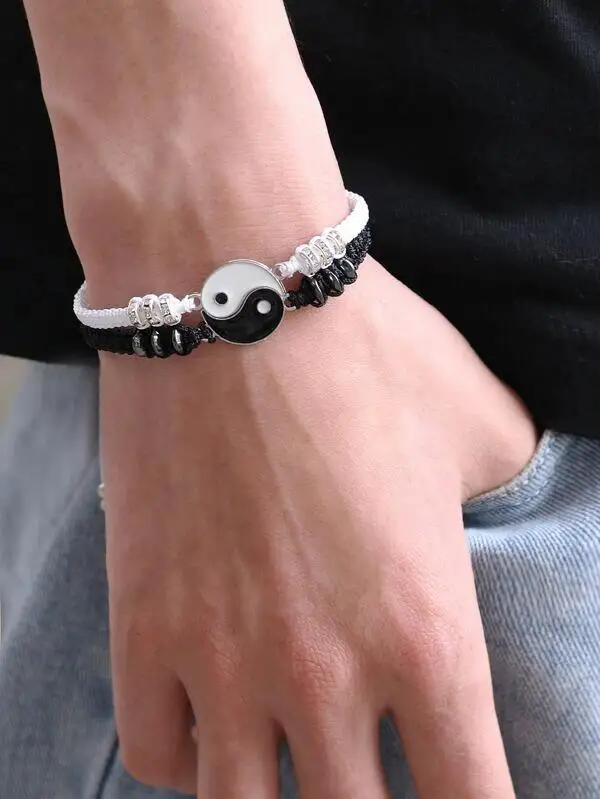 2Pcs/set Vintage Tai Chi Gossip Braided Bracelet for Women Men Best Friends Adjustable Yin Yang Bracelets Fashion Couple Jewelry