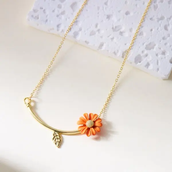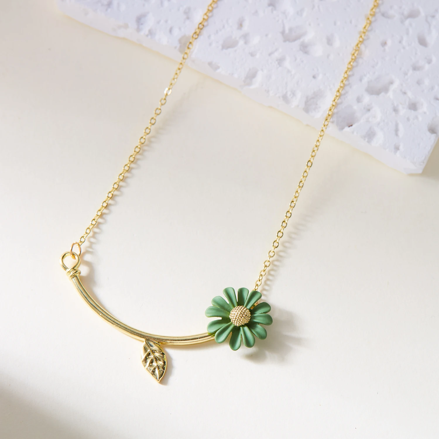 Daisy Flower Clavicle Chain Necklace for Women Girls Korean Sweet Colorful Flowers Short Choker Bridal Wedding Party Jewelry