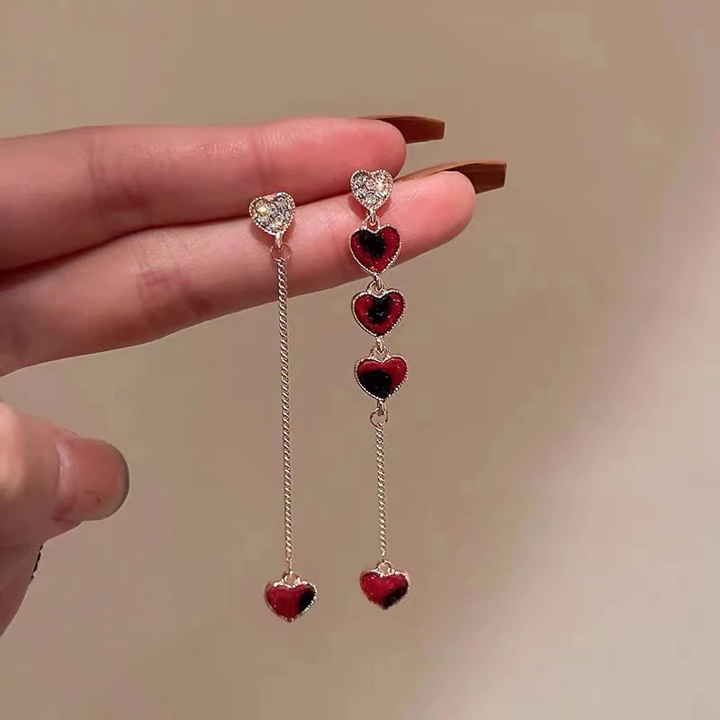 Exquisite Blue Heart Shaped Zircon Earrings for Women Luxury Long Tassel Ear Line Dangle Earring Ladies Wedding Party Jewelry