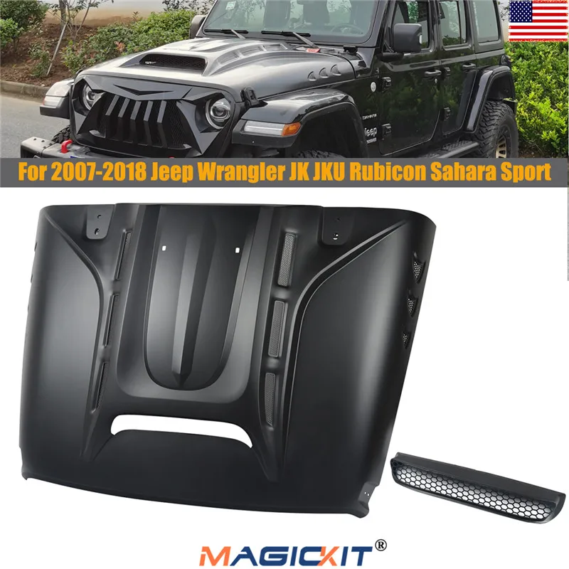 MagicKit For 2018 2019 2020 Jeep Wrangler JL Gladiator JT Unlimited Steel Hood Vented