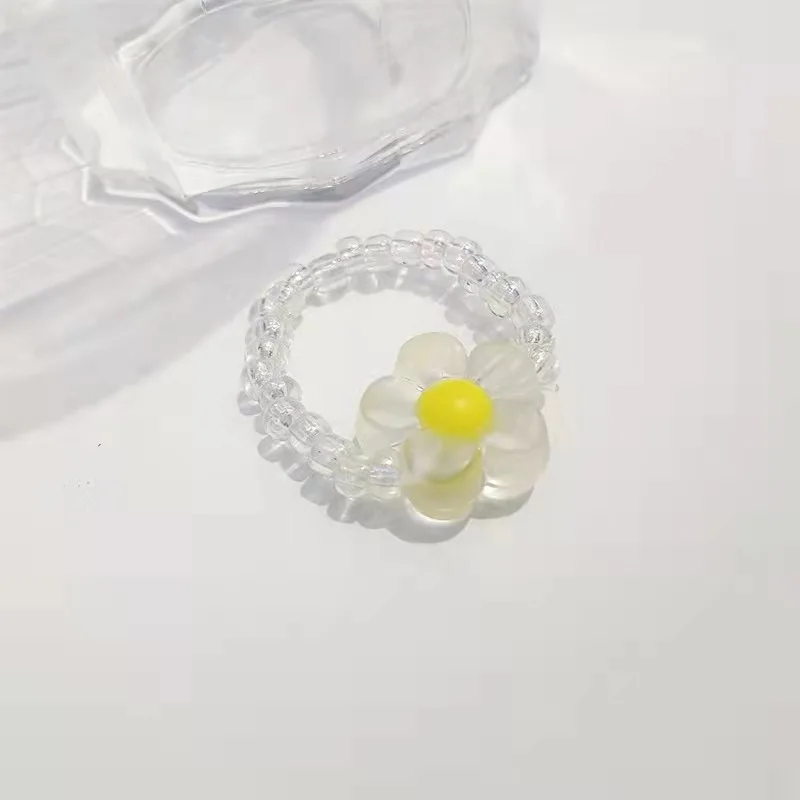 Bohemia Colorful Small Flower Ring Handmade Round Multi Beaded Rice Beads Ring For Women Girls Summer Beach Cute Jewelry Gifts