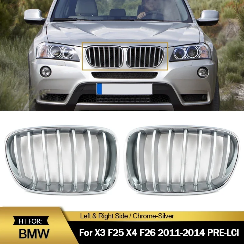 Chrome Surround W/Silver Slats Front Bumper Kidney Grille For BMW X3 F25 2010-13