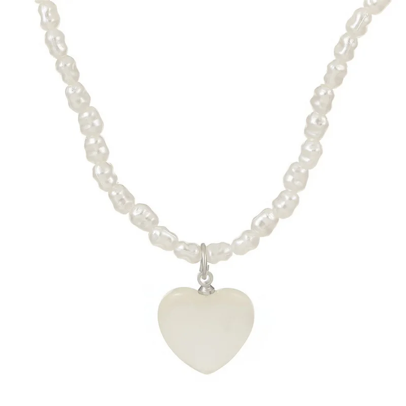 Minimalist Natural Shell Leather Necklace for Men Double Heart Imitation Pearl Chain Choker Necklace Women Fashion Jewelry Gift