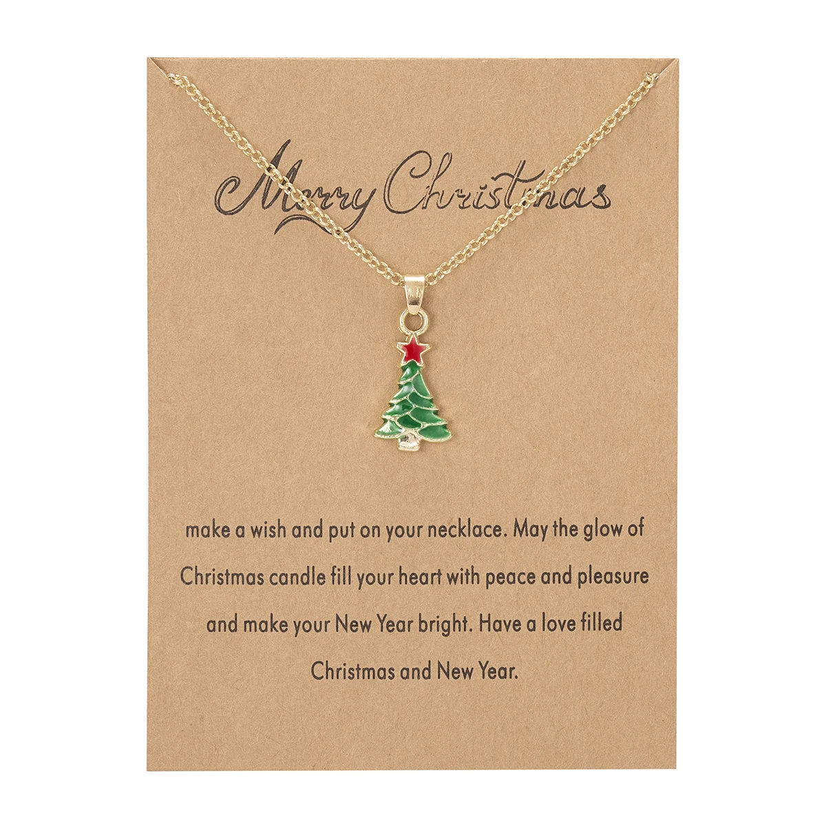 Cute Christmas Neck Chain Tree Star Snowman Santa Claus Bell Boots Wish Painting Oil Paper Card Necklace Jewelry New Year Gifts