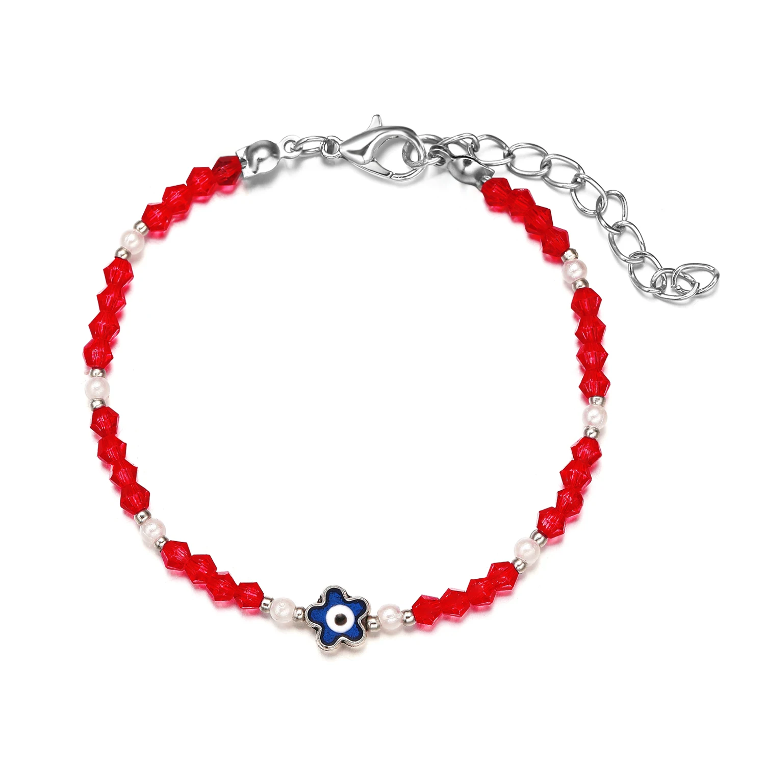 Simple Bohemian Imitation Crystal Bead Bracelet for Women Lucky Blue Evil Eye Adjustable Bracelet Summer Beach Jewelry Gifts