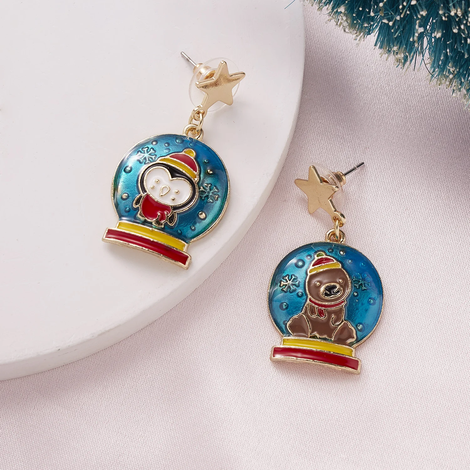 Merry Christmas Xmas Tree Red Ball Asymmetric Stud Earrings for Women Girl New Year Snowflake Bell Deer Zircon Festival Earring