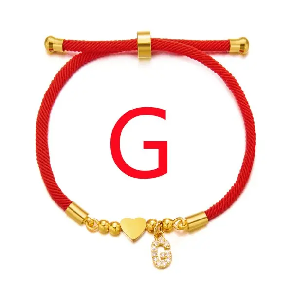 New Stainless Steel Gold Color Heart A-Z Initial Letter Bracelet Men Luck Red Rope Charm Bracelet For Women Men Jewelry Gift