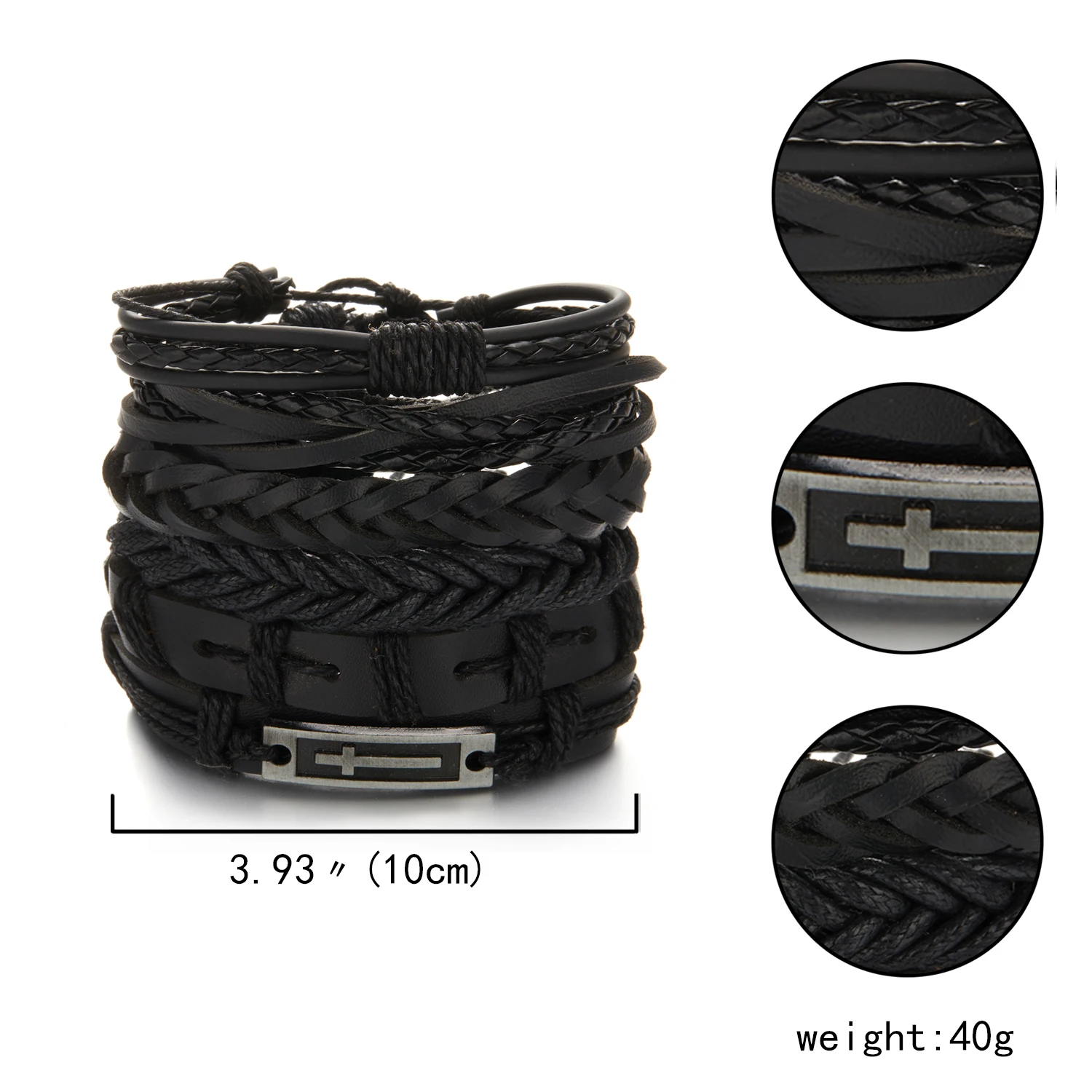 New Style Hand-woven Combination Bracelet Fashion Adjustable Punk Hip-Hop Men Leather Bracelet Set Luxury Jewelry Gift Wholesale